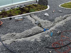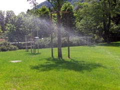 Nach den bauseitigen Vorarbeiten (Wasserbezug Haus, Kernbohrung) und den Grabarbeiten wird die Bewässerungsanlage von uns installiert. Je nach Wunsch eine programmierbare Anlage mit Regensensor oder ein Batterie betriebenes Steuergerät am Aussenhahn.